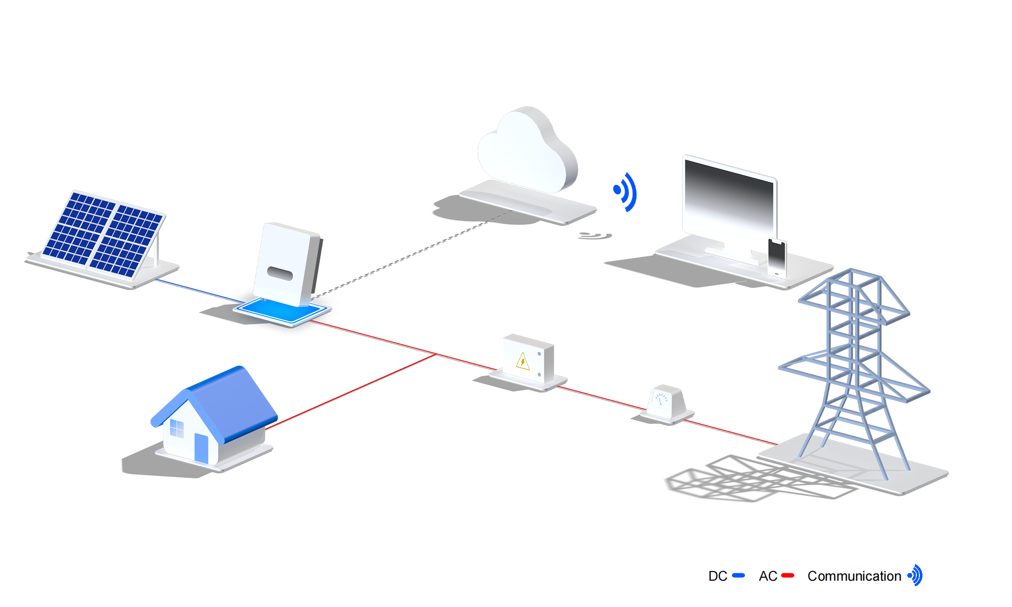 Rede estável + Sistema fotovoltaico confiável + Alimentação de rede inteligente